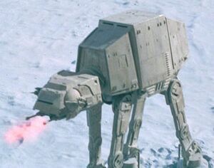 The 15.5-meter tall All‑Terrain Armored Transport (AT‑AT) is an imposing, four-legged behomth that shakes the ground as it plods toward enemy fortifications. (The Empire used AT‑ATs to overwhelm Rebel forces on Hoth in Episode V: The Empire Strikes Back.)