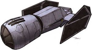 The Scimitar Assault Bomber was developed by Imperial Engineers at the behest of Grand Admiral Thrawn following the [Battle of Endor. Thrawn saw the need for a craft that would be more effective than the aging TIE bomber, which suffered from poor maneuverability and a distinct lack of shields. The result was a dedicated bomber that combined the best features of the TIE bomber and the TIE interceptor, as well as some of the more successful features of the fighter craft used by the Alliance. It was dubbed the Scimitar, in honor of the Scimitar Assault Wing, the Empire’s most decorated and experienced bomber wing.
